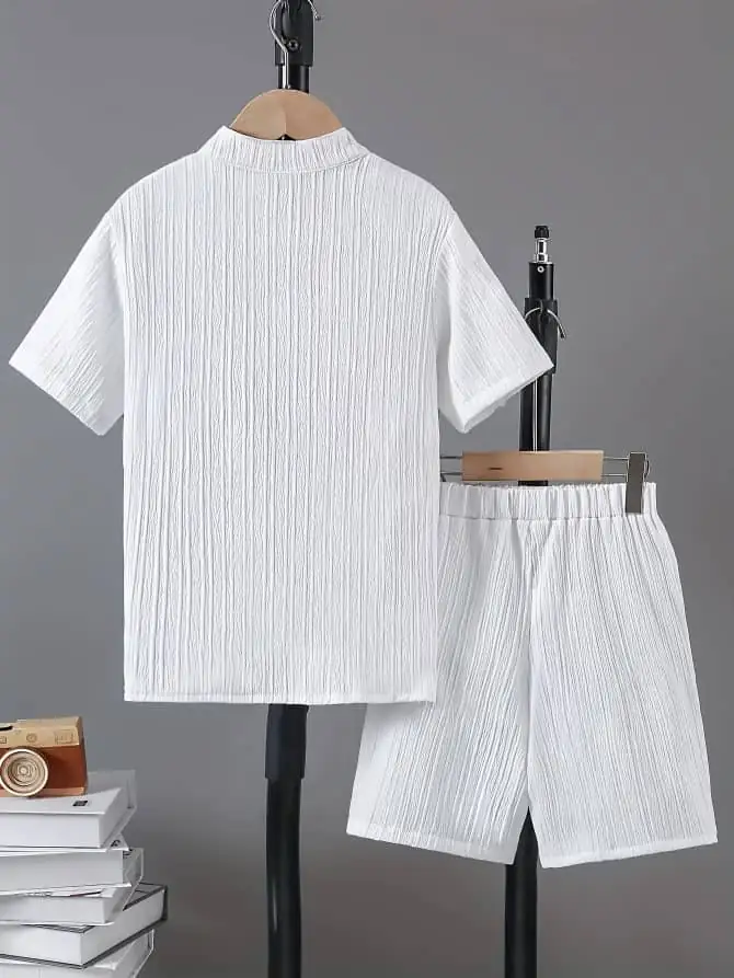 3. Easy-matching set: Includes round neck shirt and shorts for convenient dressing.