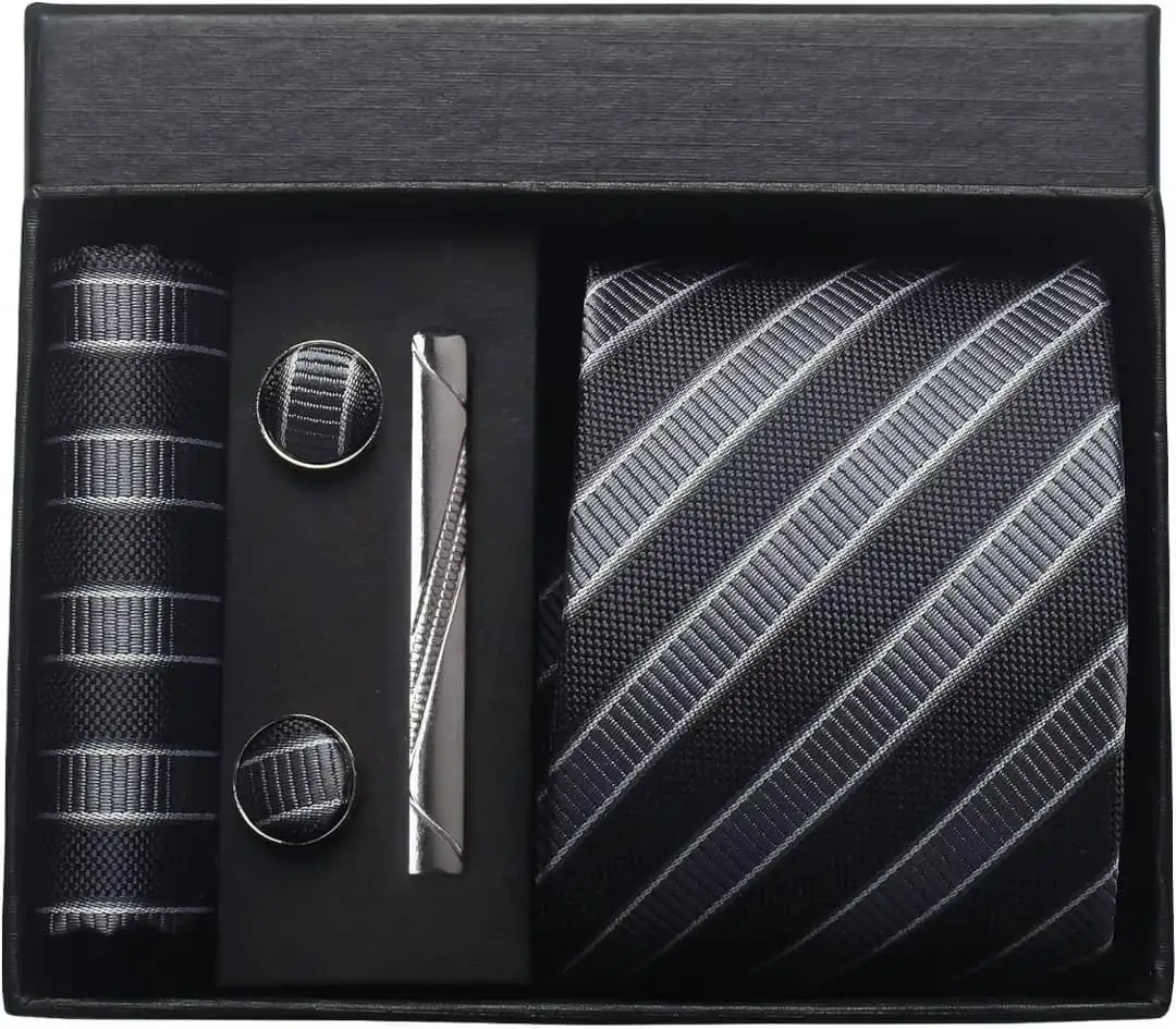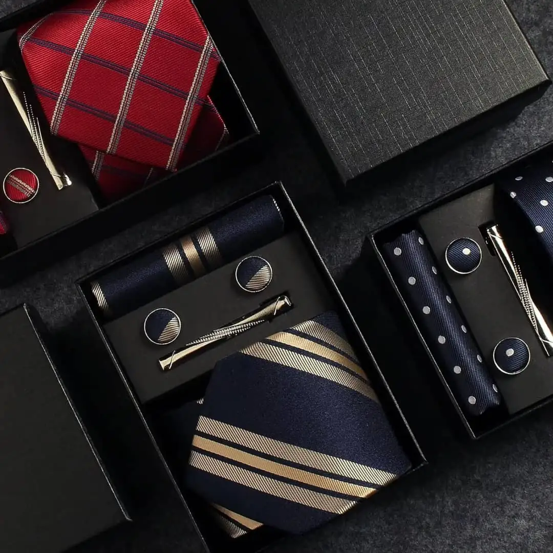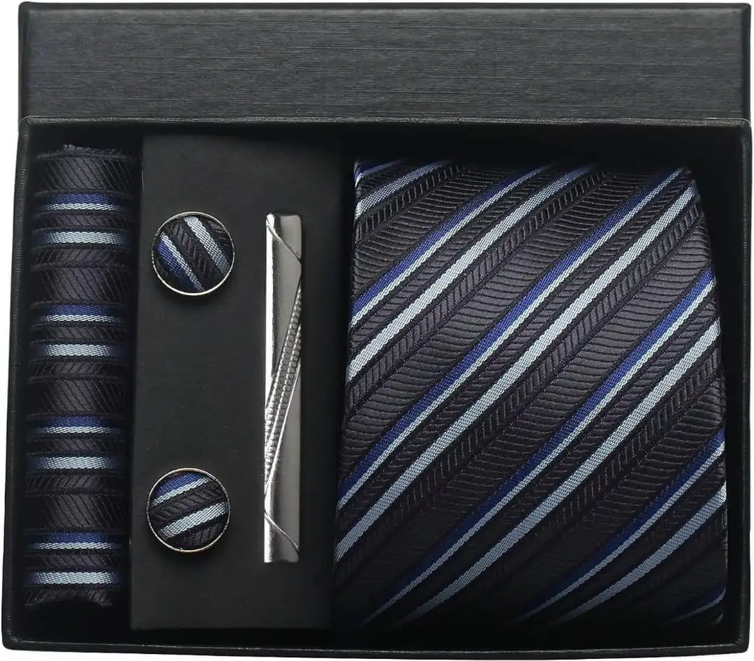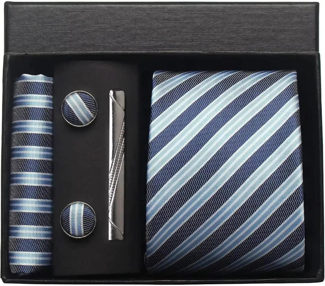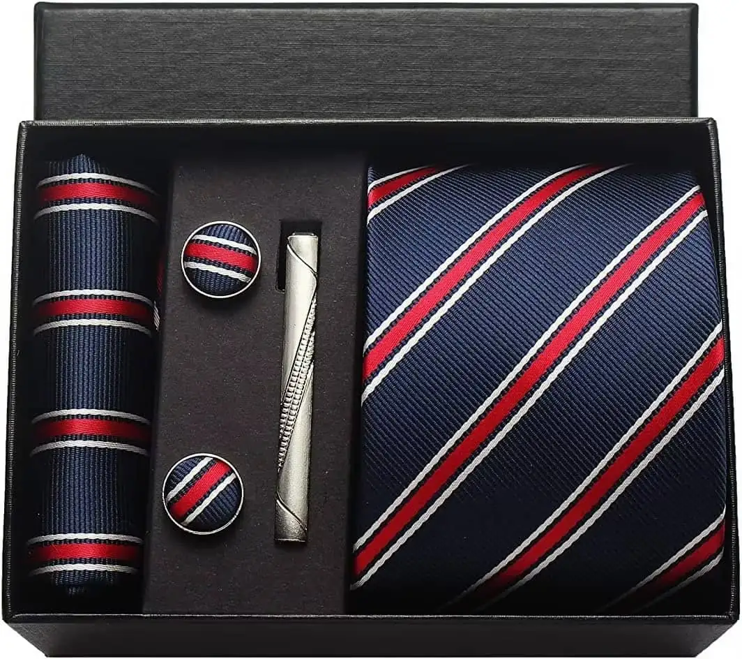 3. Complete set: Comes with matching handkerchief and cufflinks.