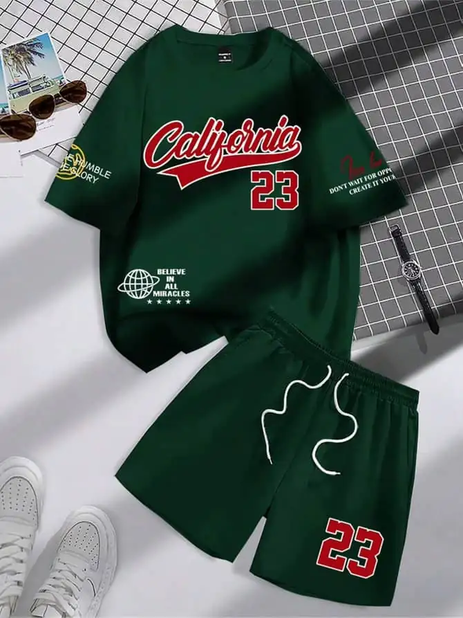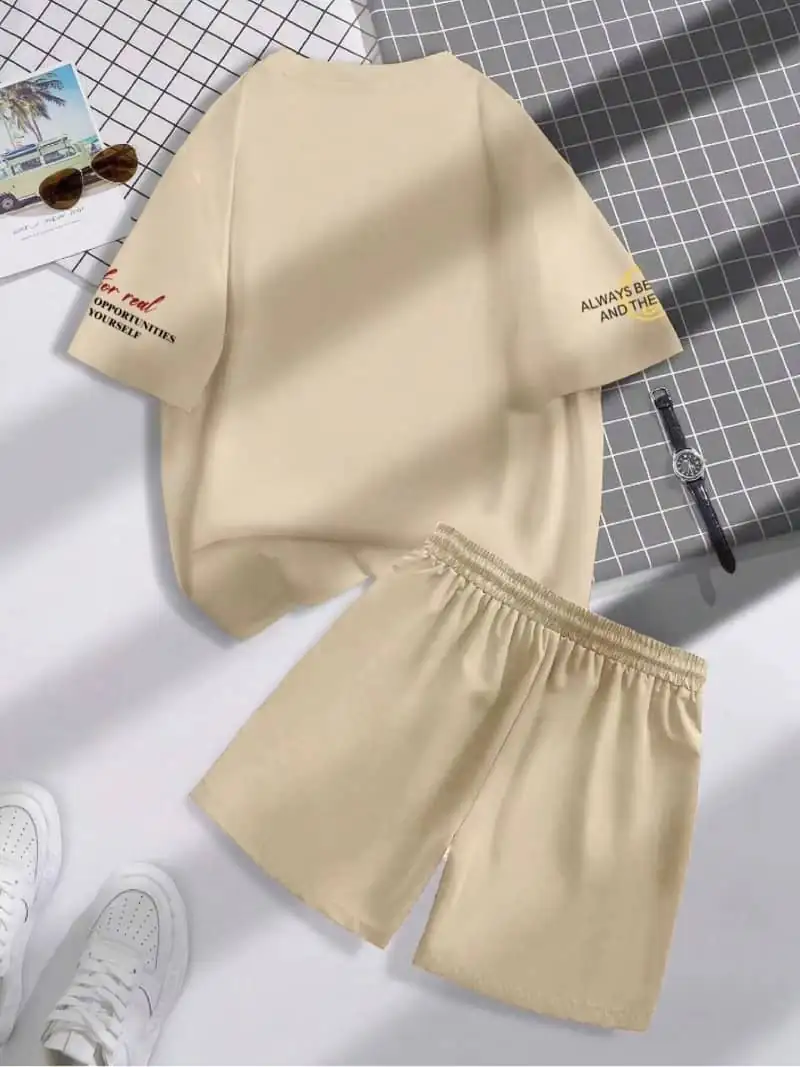 1. Two-piece matching set: Coordinated t-shirt and shorts for easy styling.