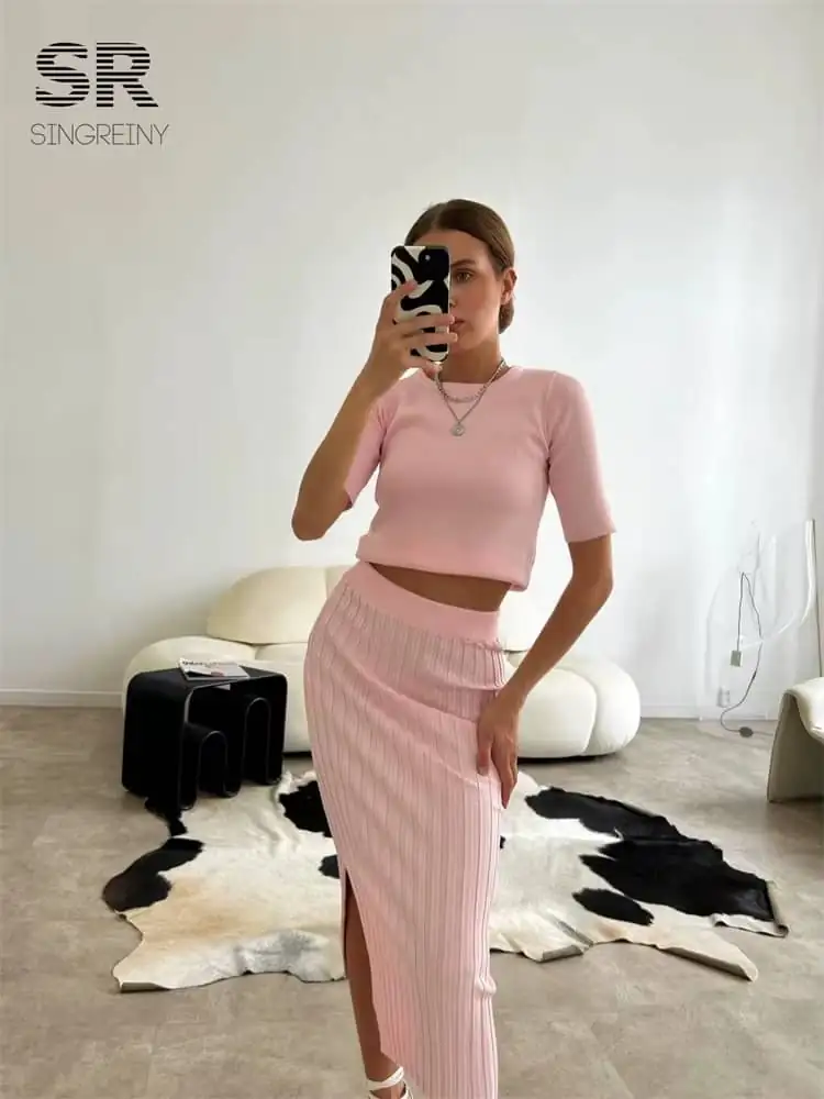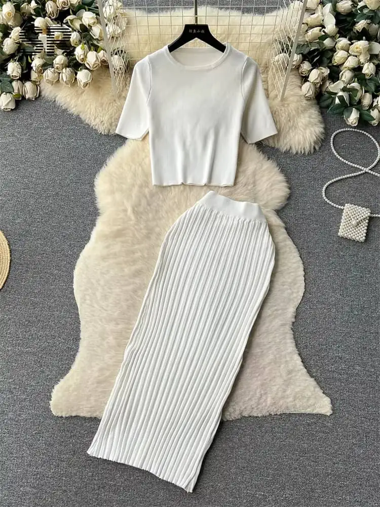 2. O-neck top and long skirt combo balances professionalism with laid-back summer vibes.