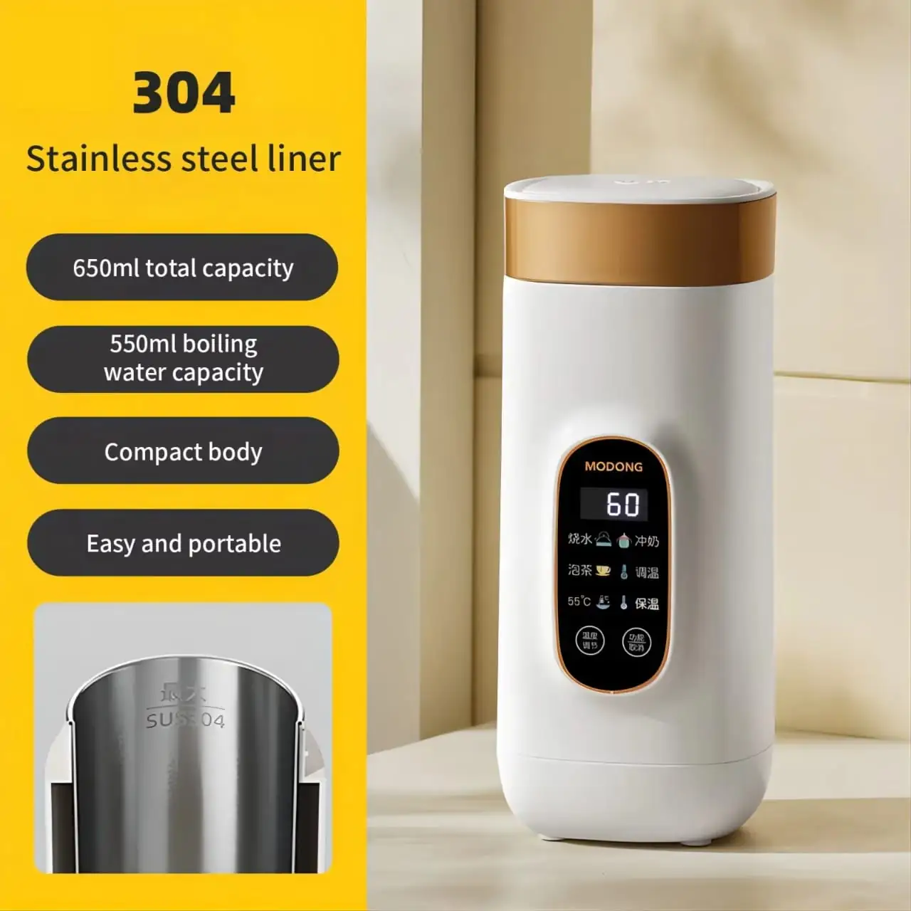 1. Compact 550ml Capacity: Ideal size for personal use—makes just the right amount of hot water or tea without waste.