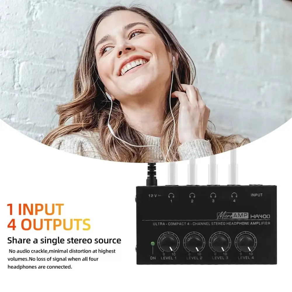1. Supports 4 headphones simultaneously: Four individual channels with separate volume control for personalized listening.
