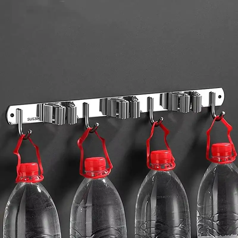 This stainless steel wall-mounted mop rack offers a stylish, simple, and durable solution for organizing mops, brooms, and cleaning tools without damaging your walls. Its hole-free, adhesive or screw-mounted design (depending on model) allows easy installation and a clean look, ideal for bathrooms, kitchens, or utility rooms in Ghanaian homes and workplaces. Made from high-quality type 304 or 430 stainless steel with a satin or brushed finish, it resists rust and corrosion, ensuring long-lasting use. The rack features spring-loaded rubber cam holders that securely grip handles of various diameters, preventing slipping and keeping your cleaning tools neatly stored and off the floor.