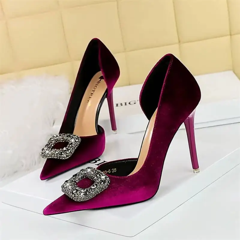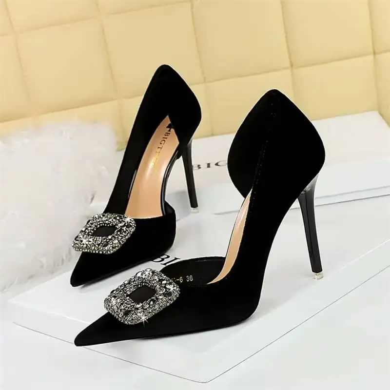 5. Metal rhinestone crystal buckle: Glamorous embellishment that catches light beautifully.